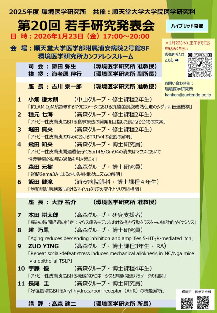 2025年度 環境医学研究所 第20回 若手研究発表会